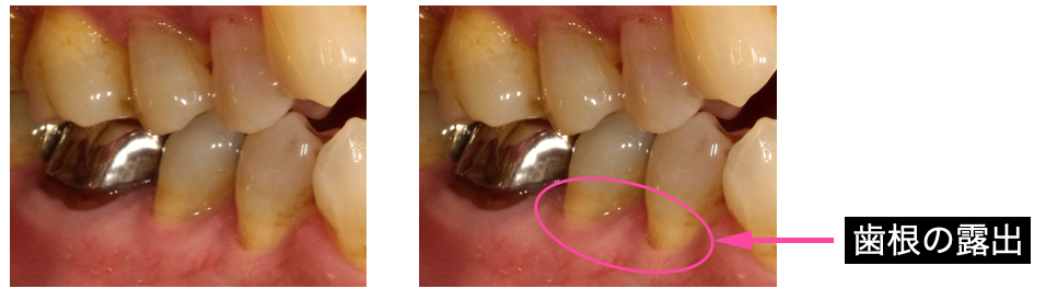 歯周病や過度な圧力でのブラッシングなどによって歯根が露出することもしみる原因になります。