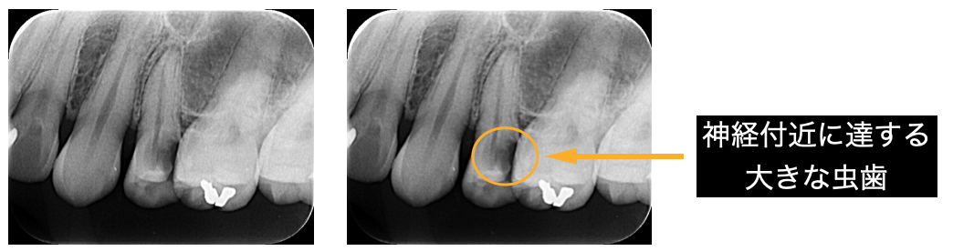 虫歯の存在に気づかなかったり、症状がないため放置していると虫歯は深くまで進行してしまいます。