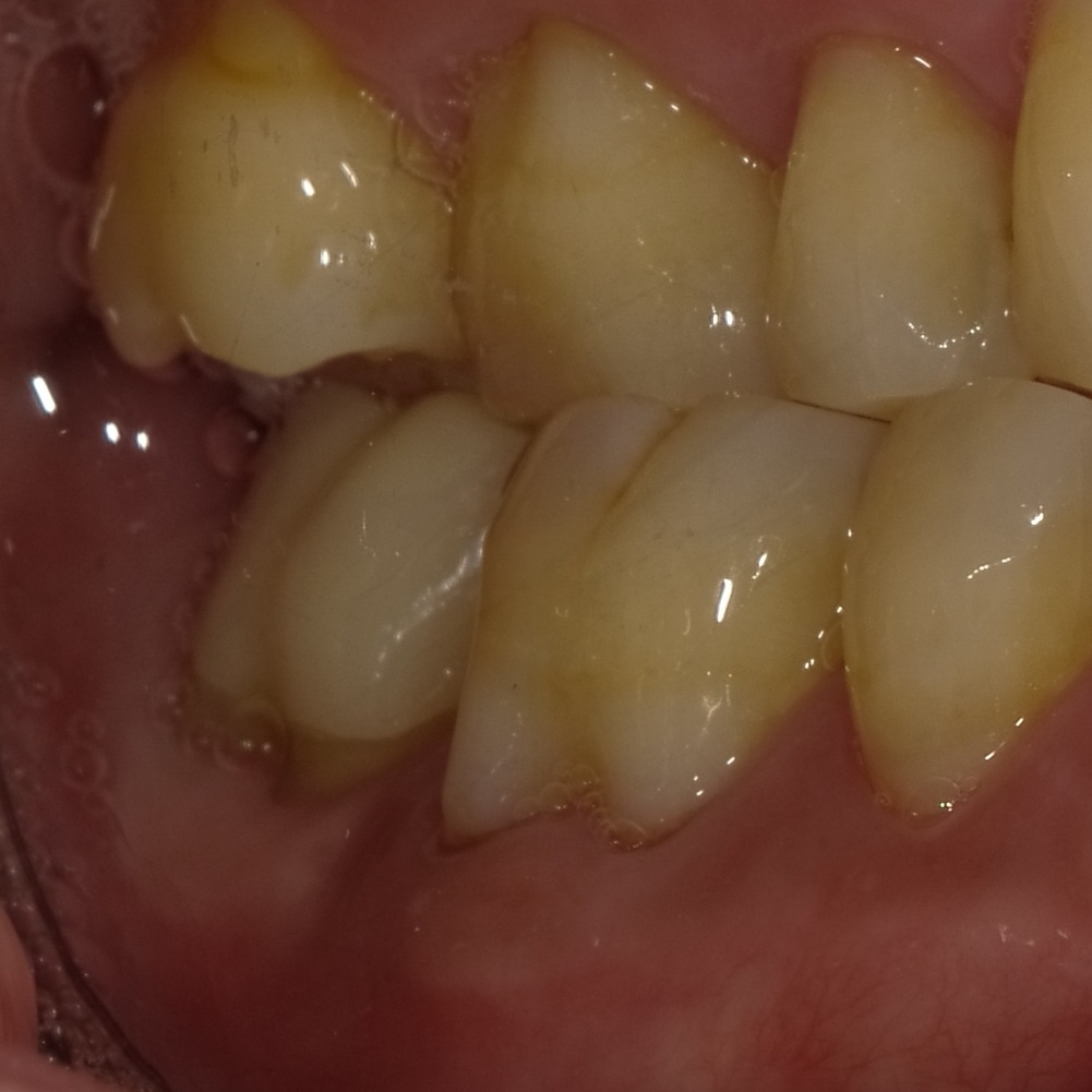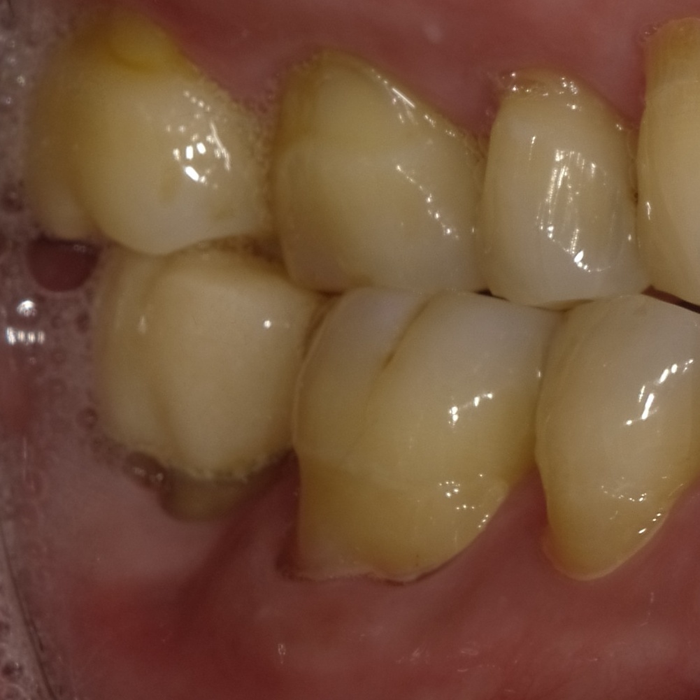 治療後3ヶ月、歯茎のできものは消えています。この時点で治癒傾向が確認され、最終的な被せを進めていきます。